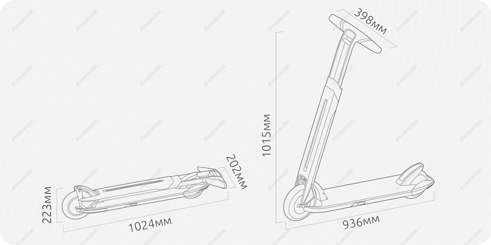 Размеры 1015 x 398 x 936 мм (1024 х 202 х 223 мм в сложенном виде)
